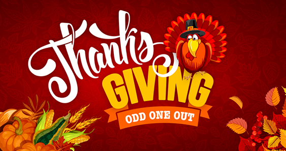 Come play Thanksgiving Odd One Out between November 1st, 2025 and November 30th, 2025 in our rewards Hub! Everyone gets 2 points for playing and the winner gets 100 points!